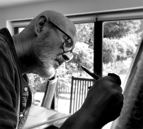 Mark: Ich mag Ambient-Musik, wenn ich morgens meine Gedanken sammeln muss, um eine Idee für ein Bild zu entwickeln. Ich liebe Electro-Musik wie Unkle, Massive Attack oder DJ Shadow, wenn ich nach dem Start etwas schneller werden muss. Ich höre viel Tool, Radiohead, Pink Floyd, Hendrix und Can. Ausserdem Jon Hassel, Sleep Token, Boards Of Canada, Steven Wilson und Crossbone Skully – die mächtigen Priest, Maiden, Mahavishnu, Miles (und das sind nur die Ms), Syd Barrett esp atm, aber ganz oben auf der Liste steht das gottgleiche Genie Alice Coltrane, insbesondere «Journey In Satchidananda», ein Werk für alle Zeiten, besonders in diesen unruhigen Zeiten, ah..., so viel unglaubliche Musik..., und so wenig Zeit!